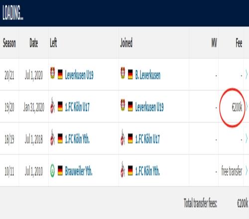 德转显示维尔茨此前转会费为20万欧元