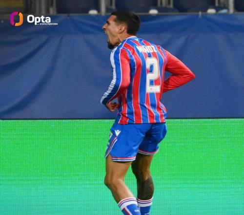 比赛第31分钟,皮诺助穆尼奥斯头球破门。借此,他成为了水晶宫首位欧战正赛进球者。