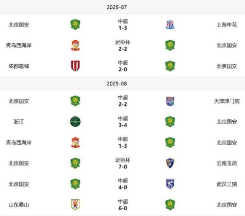 本赛季国安原本是半程第一,结果在关键战中连续1比3不敌申花和0比2败给成都蓉城。