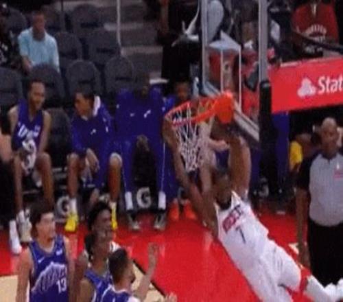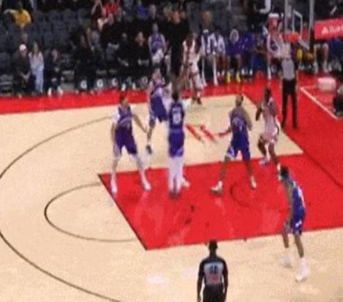 老夫聊发少年狂,与申京配合完成双手暴扣。