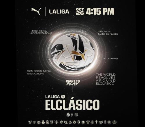 雷速体育10月9日报道宣称 北京时间10月26日23:15,西甲第10轮,皇马在主场迎来与巴萨的本赛季首次西班牙国家德比。这场比赛的专属比赛用球已经揭晓。