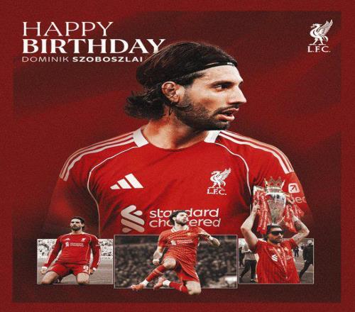 雷速体育10月25日报道宣称 今天是利物浦中场球员索博斯洛伊的25岁生日,俱乐部官方发布定制海报,向这位匈牙利球员表示祝贺。