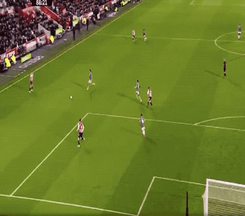 先来看几个丢球。开场仅仅5分钟,布伦特福德就用了一个非常流行的边线球手榴弹战术的,前点阿耶尔自主头球摆渡之后,后点瓦塔拉侧钩破门。就此,布伦特福德取下了领先的优势。紧接着在上半场下半时衔接点上,布伦特福德又完成了一头一尾的“致敬”,通过一次快速反击中场出球之后,沙德拿到了一次机会,形成了单刀。面对利物浦将轻松推射破门,就此2:0。