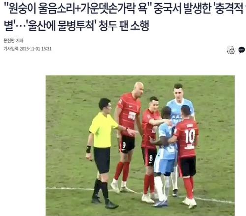 韩国媒体表示:“率领的成都蓉城输给了河南,提前无缘本赛季中超冠军。但比比赛本身更引起争议的,是成都蓉城球迷的行为。这些球迷被发现多次对河南队外援阿奇姆彭作出种族歧视行为,包括学猴子叫、竖中指等。根据中国足协的规定,类似行为可以给予俱乐部50万元罚款或空场的处罚。”