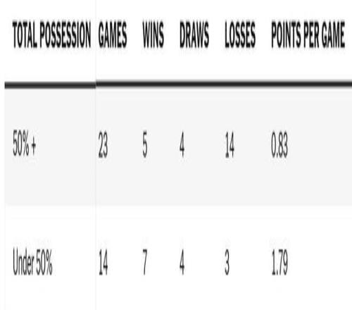在考虑曼联的控球率与他们赢球或甚至平局能力之间的联系时,比赛状态很重要。
