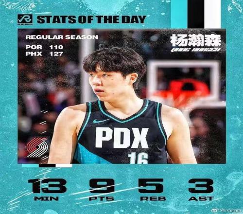 媒体人麦穗丰:刚结束的一场NBA常规赛,开拓者110比127输给太阳,但杨瀚森迎来了爆发。替补出战13分08秒,杨瀚森7投4中拿到9分5篮板3助攻1封盖的数据,比赛内容很丰富,把个人技术特点展现得淋漓尽致。