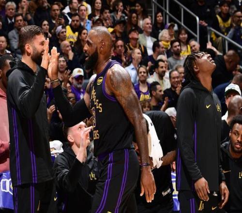 詹姆斯在第三节末尾助攻文森特投进一记压哨三分球,帮助湖人以104比93领先。