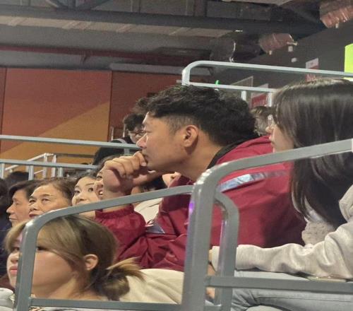 第十五届全运会U20男排比赛现场,王宇在看台观赛。(孔令旖摄)