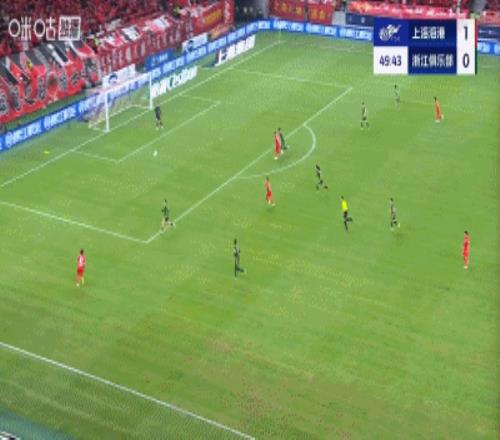 第29轮,上海海港vs浙江,王燊超极限角度凌空抽射破门