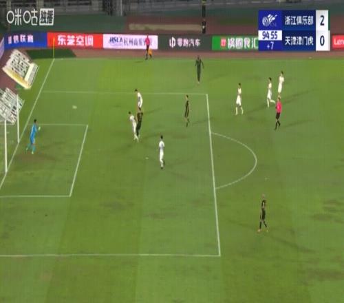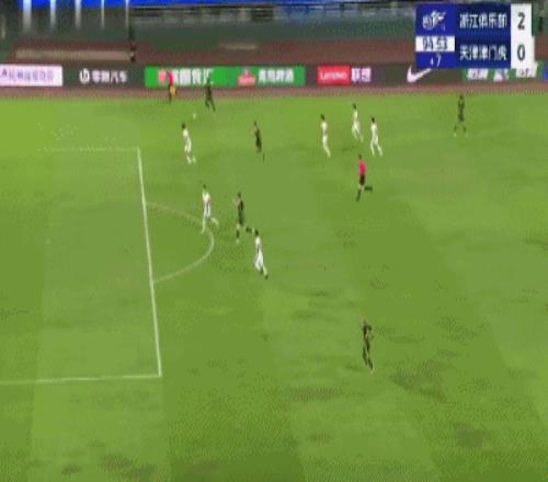 比赛第90+5分钟,弗兰克接奥乌苏边路传中,禁区内不停球凌空抽射破门,帮助浙江队2-0锁定胜局。