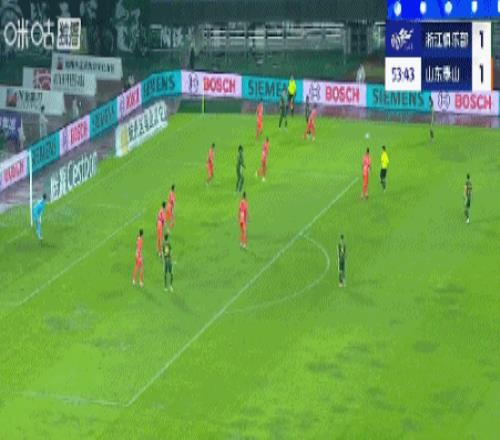 第27轮,浙江vs山东泰山,奥乌苏爆射破门