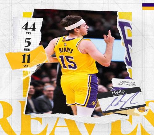 湖人队后场巨头里夫斯,在此战实现了暴走。里夫斯上场41分钟,投篮21投13中,三分11中5,罚球15中13,狂轰44分5篮板11助攻的大号两双数据,正负值+5。里夫斯以61.9%的超高命中率轰下了全场的最高分,他还投进了此战最多的5记三分球。作为全场走上罚球线次数最多的球员,里夫斯在进攻端侵略性极强。里夫斯上半场砍下了14分,第3节暴走独得22分,帮助湖人一度将分差扩大至13分。此外,里夫斯还是此战助攻次数最多的球员之一。
