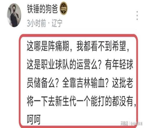 “这三场比赛不尽如人意,随着联赛的临近,时间都非常紧迫,但是我依然相信球队的每个人在联赛开始前会有一个变化,会全力以赴迎接接下来的比赛。”,杨鸣的总结可谓长篇大论,却只字未提球队青黄不接的现状,只字未提近几个赛季“死操老将”,自己该承担的责任,反而找了一大堆理由来“甩锅”。