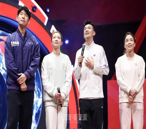 四位名将分别挑选了具有职业生涯代表意味的经典照片,刘雨辰选择了2023年苏迪曼杯的神奇逆转照,郑思维和黄雅琼选择的是东京和巴黎两届奥运会领奖台上的瞬间,陈清晨选择了2025年苏杯国羽夺冠大合照。之后,黄雅琼的父母、郑思维的妈妈、以及自称“今天是清晨的‘妈妈’”的最佳搭档贾一凡作为亲友团为他们送上鲜花和祝福。