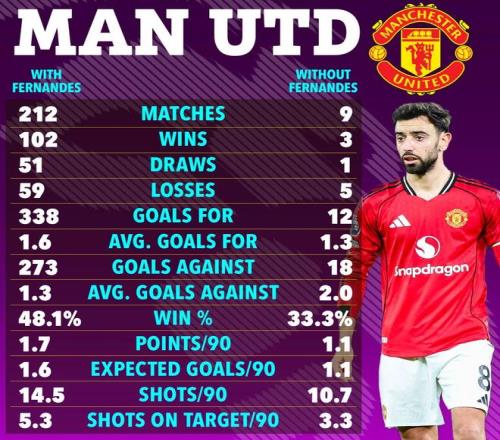 B费自从2020年加盟曼联之后,308次出场贡献196次进球和助攻,对于红魔而言,这么长时间缺少他,完全是前所未有的情况。这绝对不会是一个快乐的圣诞节。