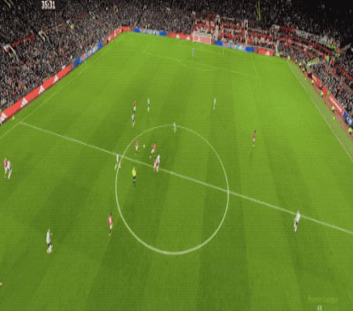 第36分钟,曼联在前场连续一脚传球,库尼亚的射门没能命中目标。