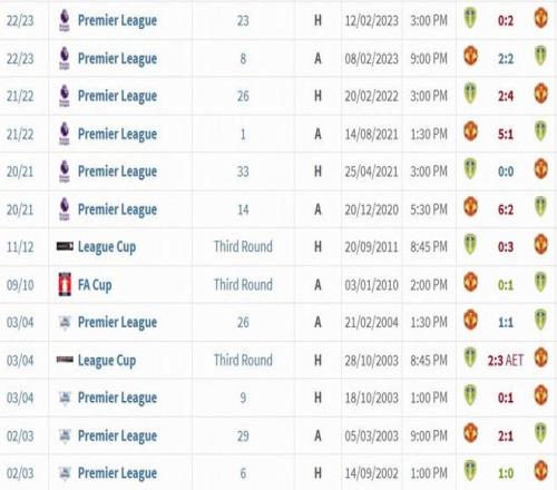 在其他赛事中,利兹联最近一次击败曼联是在2010年1月进行的足总杯第三轮,他们在客场1-0取胜。