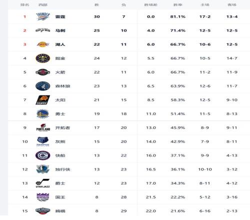 今日比赛后快船、独行侠排名互换,其他西部球队排名不变。