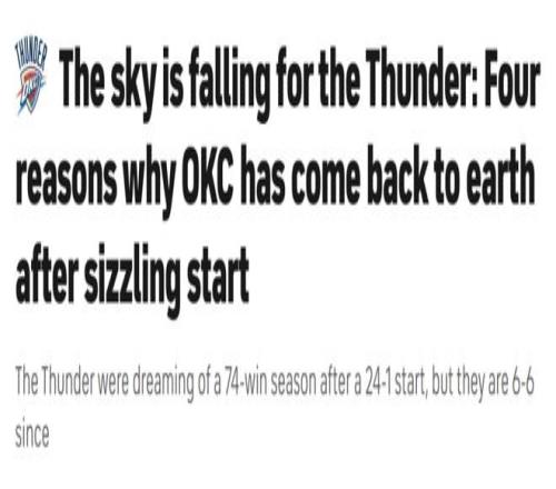 但眼下,俄克拉荷马城的天,似乎真的要塌了,所有人都陷入了焦虑。知名美媒CBS深入剖析雷霆队近期战绩滑坡的原因,细数那些可能阻碍他们卫冕之路的短板——