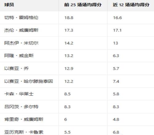 以下是角色球员的场均得分变化——