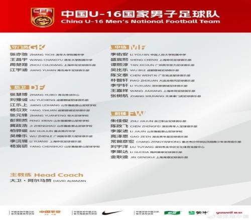 U16国足集训名单: