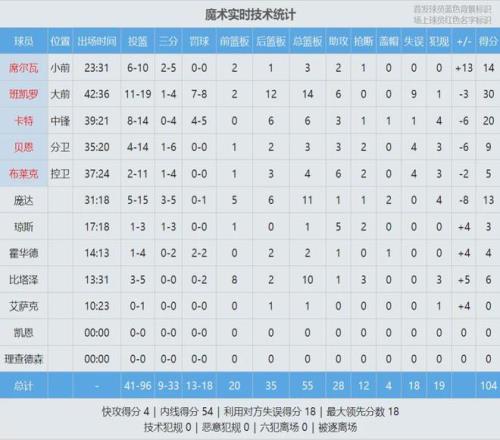 值得一提的是,这两记三分都是打板命中的。班凯罗此役三分4中1,只进了这最后一个。今天班凯罗投篮19中11,三分球4中1,罚球8中7,砍下30分14篮板6助攻9失误,正负值-3。本赛季班凯罗表现不佳,这次绝杀算是自我救赎!