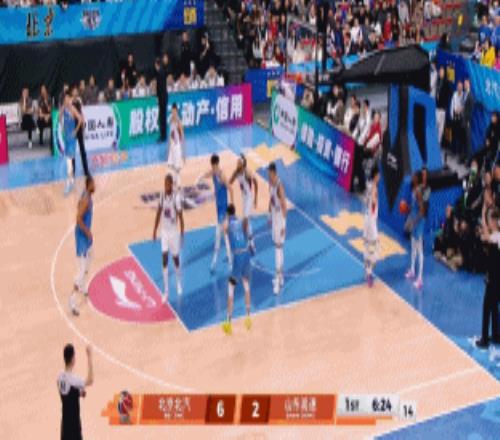 高诗岩膝盖疲劳缺阵,谢智杰来到先发,北京首发祭出内线双高+双锋一卫,开局山东5次篮下强攻仅得2分,杰曼曾凡博突破、雷蒙2记中投、帮助北京建立8-2领先。