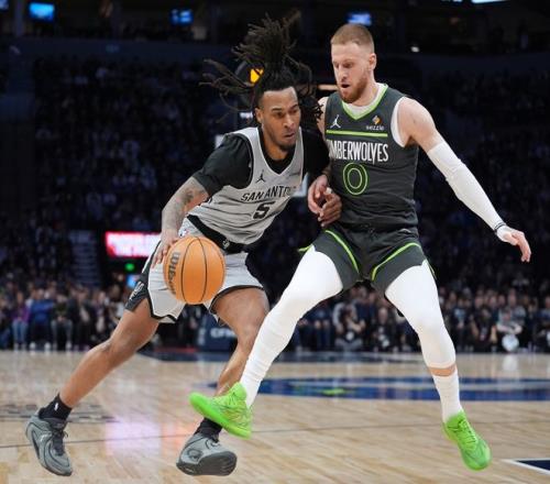 进入最后5分钟马刺都还领先森林狼6分,里德、爱德华兹、兰德尔一人命中一球后森林狼完成扳平,终场前2分19秒爱德华兹突破命中后森林狼实现了反超,终场前1分28秒巴恩斯三分命中马刺再度反超,麦丹终场前48秒中投森林狼又反超,福克斯终场前33秒命中关键中投马刺103-102领先1分。
