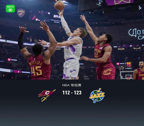第四节骑士达里厄斯-加兰拿下9分,爵士基扬特-乔治拿下9分,最终骑士112-123不敌爵士