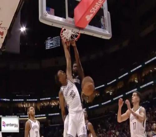 胖虎真是NBA名符其实的跳跳虎,低位一挑三,硬是凭着肉身开路挤出空间,突然暴起起飞,旱地拔葱双手隔扣克拉克斯顿赵四。