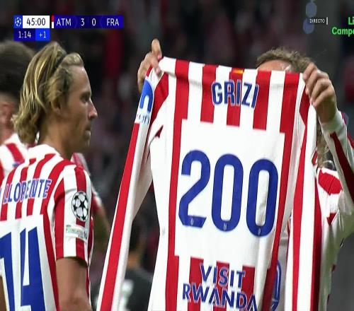 雷速体育10月1日报道宣称 欧冠联赛阶段第2轮,马竞主场迎战法兰克福。上半场补时阶段,格列兹曼破门,打入个人马竞生涯第200球。在进球后,格列兹曼也拿出提前准备好的马竞生涯200